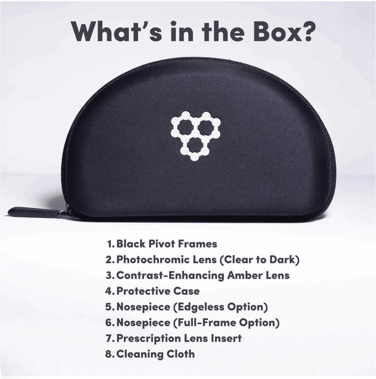 Includes two easy-to-swap lenses. The 1st automatically adjusts to all light conditions. The 2nd is an Amber lens designed to improve contrast in low light conditions.